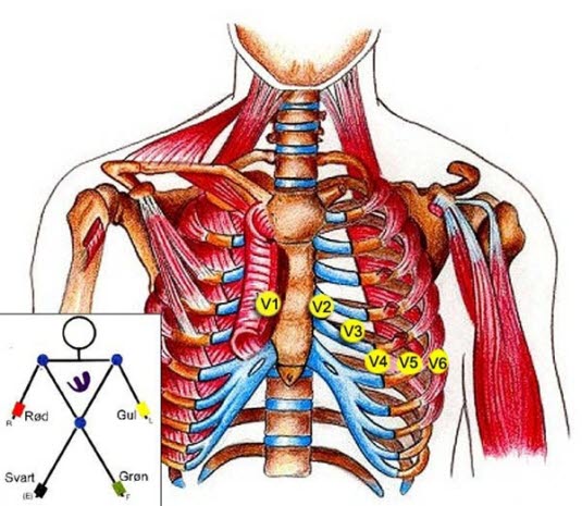 - V1: 4. Interkostalraum (ICR) parasternal rechts